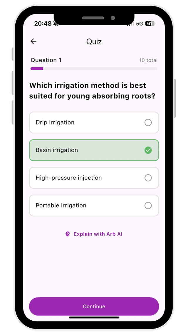 Get instant, arborist-trained explanations on tricky concepts any time you study.